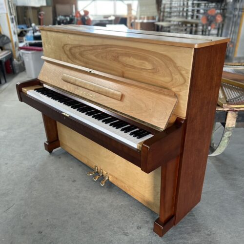 外装・フレームはウォルナットでアンティーク調にカスタム塗装。弦をレスローワイヤー、ハンマーヘッドはレンナーハンマーに交換。アクションオーバーホール済み。白鍵は象牙1枚貼りと、贅沢な一台に仕上げました!専用のトムソン椅子付き。