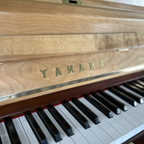 元々黒のピアノでしたが塗膜を剥がし、下地の木材を活かした木目のピアノにカスタムしました。